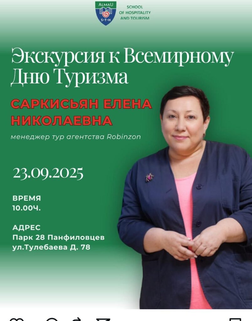 Экскурсияны Елена Николаевна Саркисьян жүргізіп, саябақтың тарихы туралы қызықты деректермен бөлісті. Жаңбырлы ауа райына қарамастан, студенттер белсенділік танытып, үлкен қызығушылық білдірді. Олар мұндай іс-шаралар тек қана ой-өрісті кеңейтіп қоймай, қаланың туристік нысандарын кәсіби тұрғыдан түсінуге көмектесетінін атап өтті.