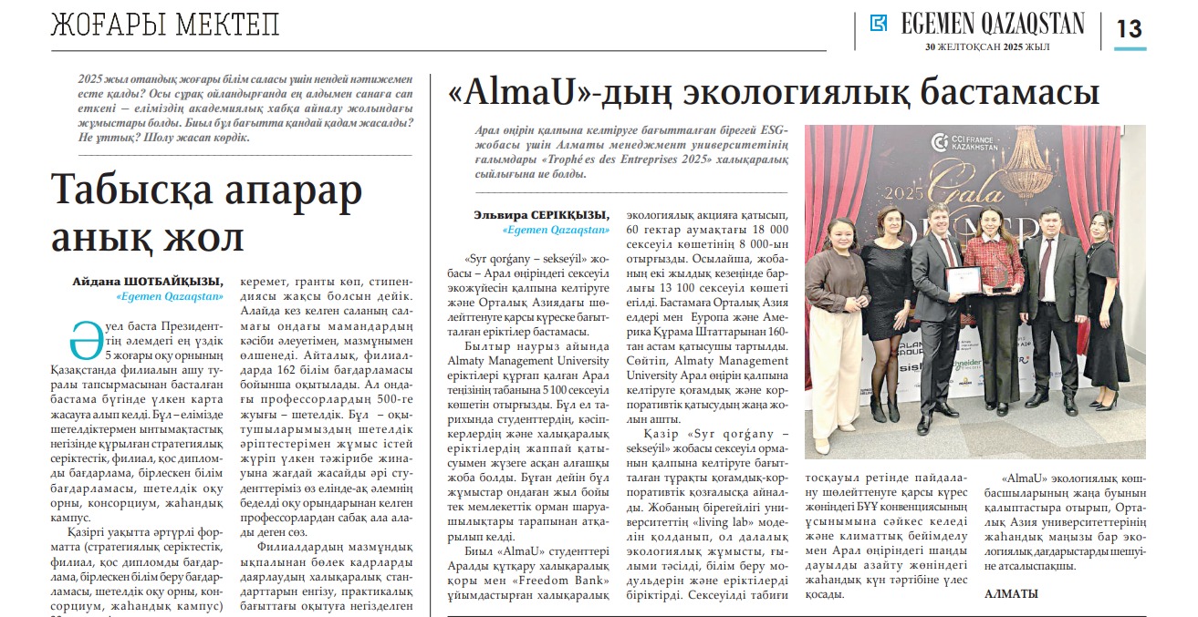 «AlmaU»-дың экологиялық бастамасы