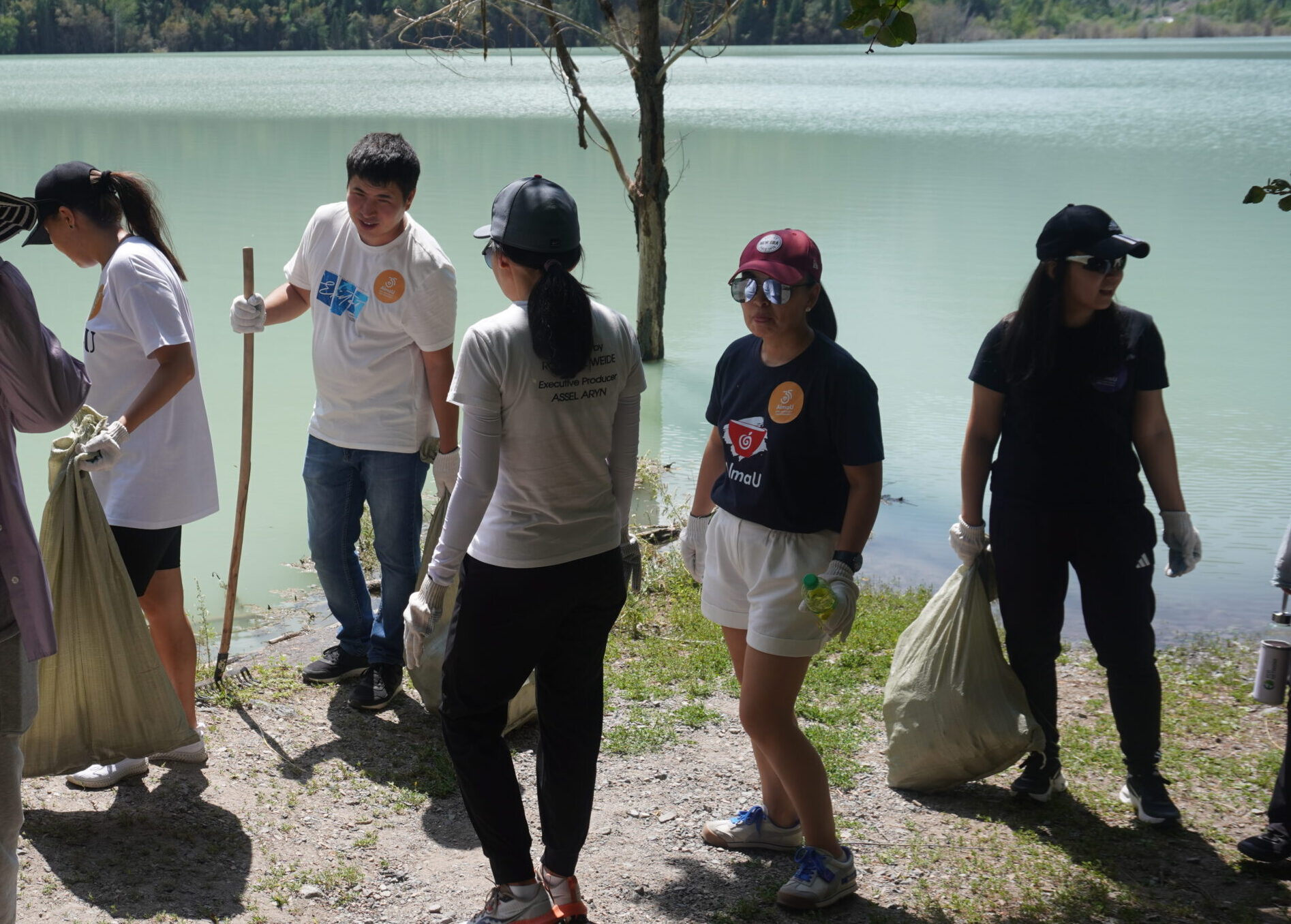 AlmaU Eco Team Building took place on August 9th at Lake Issyk. It brought together university staff for an important environmental mission: cleaning up the area around Lake Issyk.