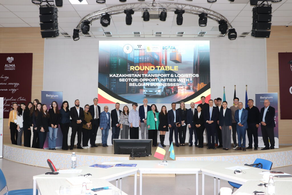 20 ноября в АlmaU состоялся международный круглый стол «Транспортно-логистический сектор Казахстана: возможности сотрудничества с бельгийским бизнесом», организованный при поддержке Посольства Королевства Бельгии в Республике Казахстан, Торгово-экономического отдела Посольства, Агентства по внешней торговле и инвестициям Валлонии (AWEX-Алматы) и Ассоциации транспорта и торговли Европы и Центральной Азии (ECATA).