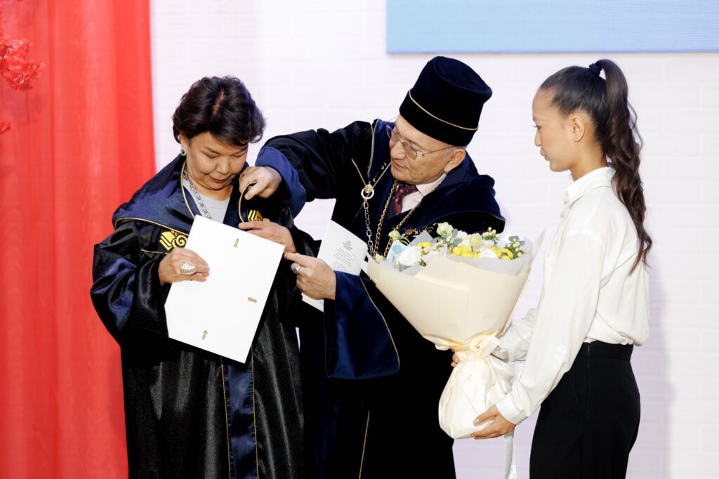 В рамках церемонии состоялось присвоение звания «Почётный профессор AlmaU» Жанат Бердалиной – почётному члену Совета попечителей AlmaU, независимому директору Polymetal, экс-президенту и управляющему партнёру KPMG в Казахстане и Центральной Азии.