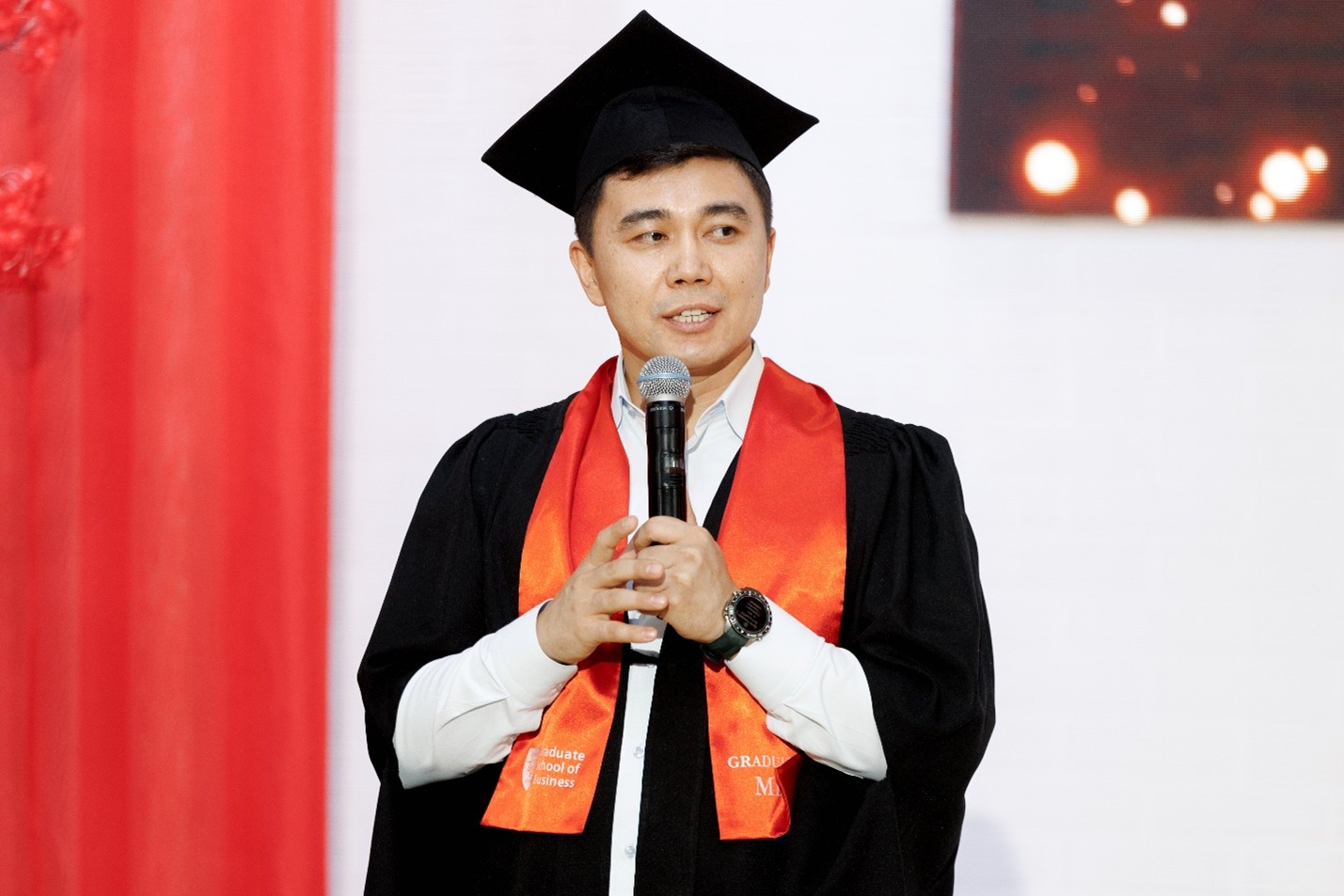 «Обучение взрослого человека – это всегда испытание не только для него самого, но и для его близких. Это общие жертвы: отложенные отпуска, вечера, проведенные не вместе, а за учебой, и дополнительное бремя забот, которое ложилось на ваши плечи. Поддержка семьи, терпение и вера были тем фундаментом, без которого сегодняшний успех был бы невозможен. Выпускники MBA – вы покорили свою вершину. Доказали, что умеете достигать целей, вести команду и отвечать на вызовы. Вы – мастера реализации. А выпускники DBA – архитекторы управленческих систем. Ваш путь – глубокое осмысление и видение целого. Вы создаёте знания и стратегии, которыми завтра будут руководствоваться другие» – отметил он.