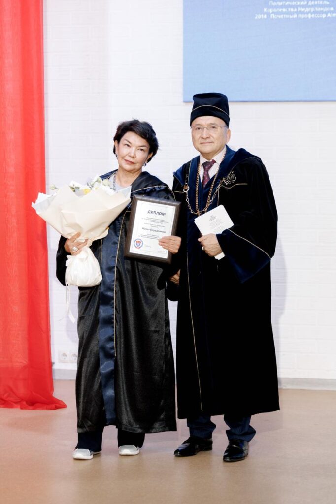 AlmaU Ғылыми кеңесі басқарушылық білімді, ғылыми саланы және университеттің дамуын ілгерілетуге сіңірген зор еңбегі үшін Жанат Қоланқызы Бердалинаны «AlmaU-дың Құрметті профессоры» атағымен марапаттады.